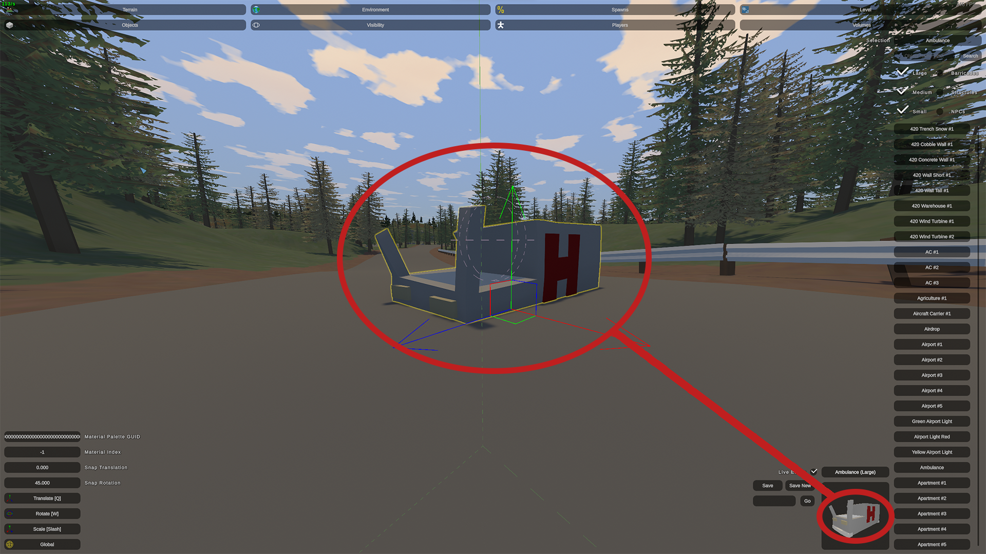 [ { // Asset GUID or UInt16 ID - Objects do not require UInt16 IDs so they will likely become discontinued. "object": "GUID or ID", // Position offset (m) "position": [x: decimal, y: decimal, z: decimal], // Euler rotation offset (you can add a fourth argument (w: decimal) to make it read as a Quaternion) "rotation": [x: decimal, y: decimal, z: decimal], // Optional - Default is 0. Higher priorities are used first. "priority": integer }, { "object": "205a8cc33c9849c9bd65790403d0753d", "position": [-3, -10, 9], "rotation": [-107, -80, 260], "priority": 1 } ]