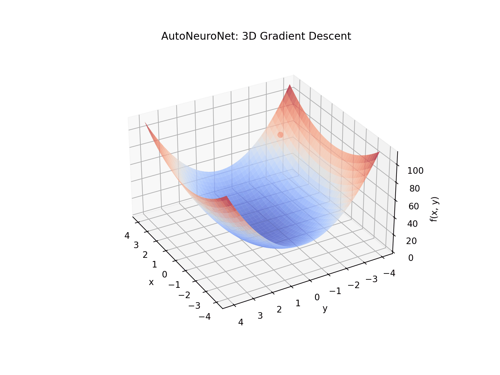 See AutoNeuroNet in action with a simple 3D visualization of gradient descent through reverse-mode automatic differentiation and backpropagation of gradients: