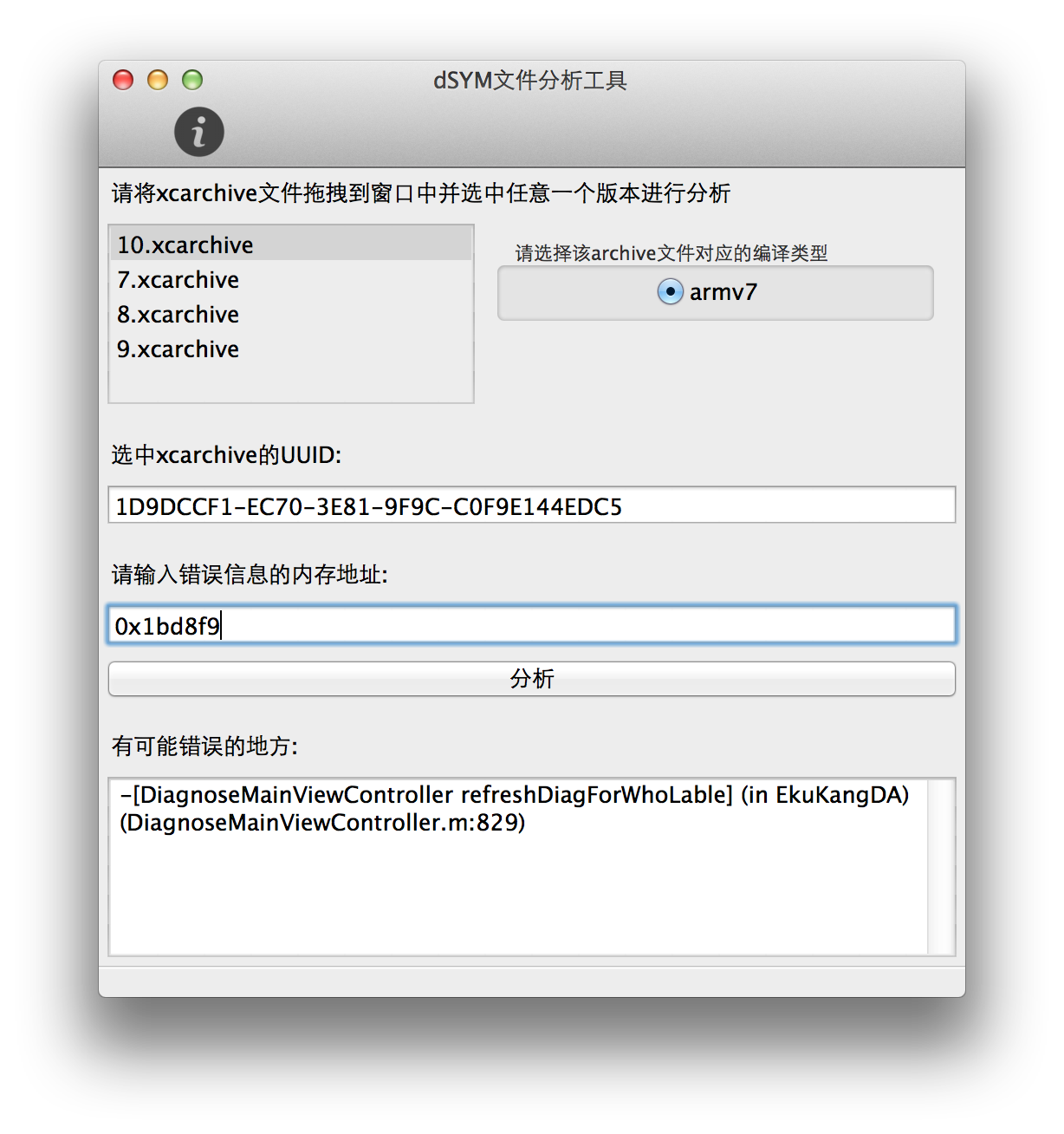 1.增加对 dSYM 文件的支持,直接将 xcarchive 或 dSYM 文件拖入窗口中即可。