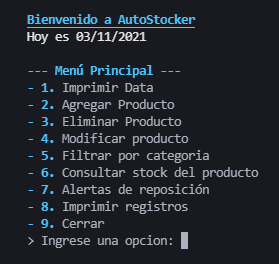Autostocker es un programa basado en consola que utiliza una base de datos SQL. Este programa tiene una interfaz sencilla, rápida e intuitiva para el manejo de la información. Lo que buscamos es que el potencial cliente que decida adquirir este producto pueda tener un fácil manejo del sistema con funciones enfocadas a sus necesidades, y así obtener un crecimiento exponencial dentro de su empresa/negocio.