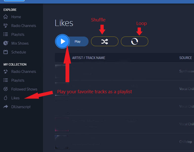 • Play your "Likes" as a playlist.