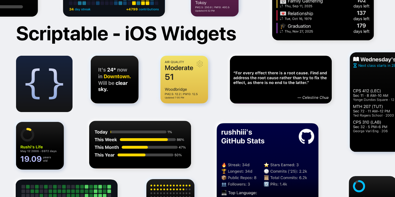- From interactive calendars to dynamic quotes and real-time weather updates, my collection showcases how Scriptable can transform your device into a dynamic dashboard.